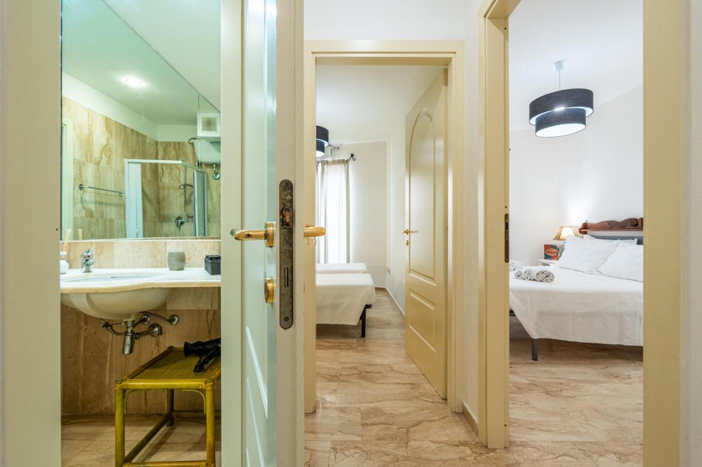 Appartamento con 2 Camere da Letto. Boasting a private entrance, this air-conditioned apartment comes with 1 living room, 2 separate bedrooms and 1 bathroom with a shower and a bidet. The well-equipped kitchen has a stovetop, a refrigerator, kitchenware and a microwave. The spacious apartment features a flat-screen TV with streaming services, a washing machine, soundproof walls, a minibar as well as city views. The unit has 4 beds.