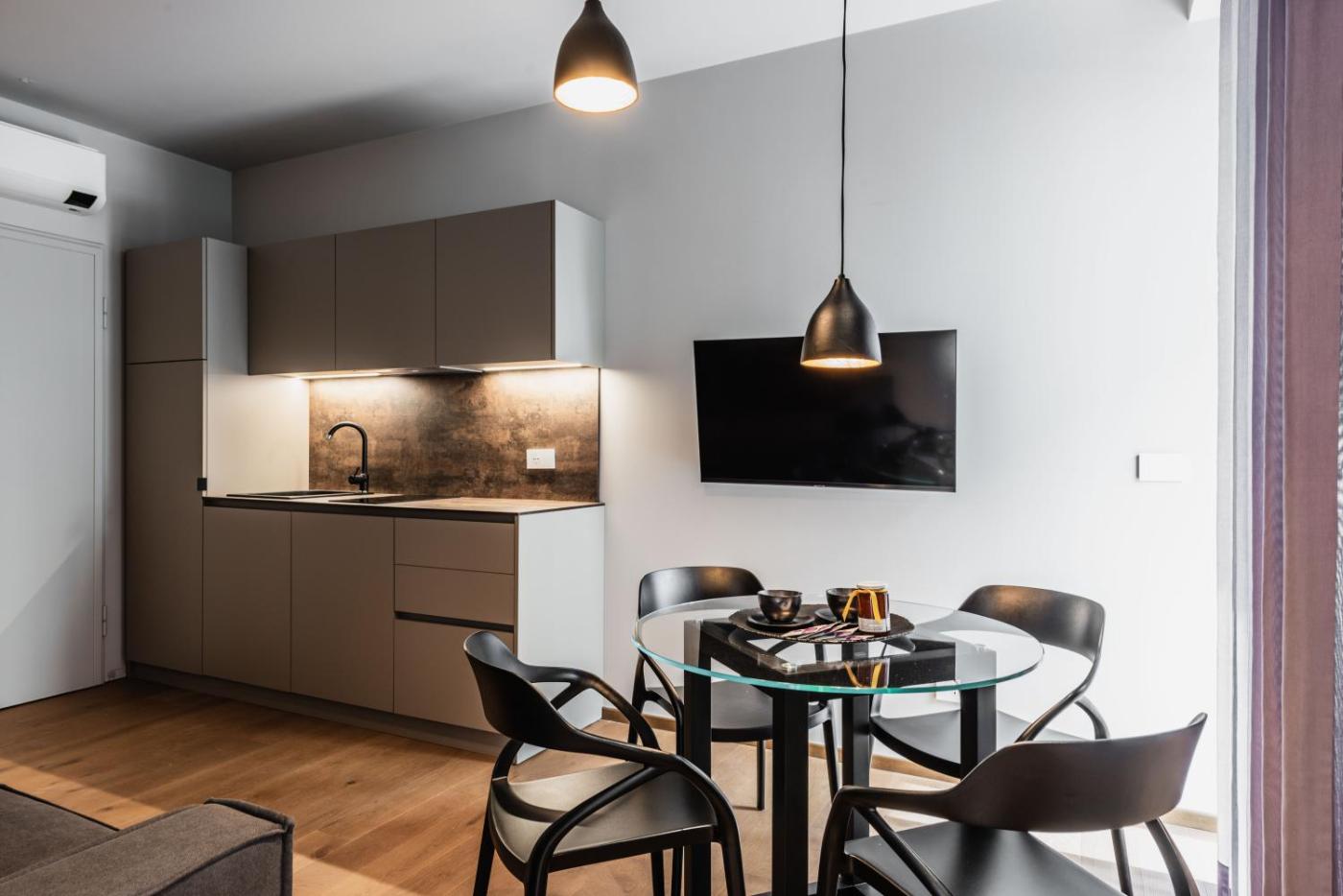Gli alloggi hanno l’aria condizionata, una cucina con utensili e zona pranzo, una TV a schermo piatto e un bagno privato con bidet,di cortesia e asciugacapelli. In dotazione anche un frigorifero, un forno a microonde e un piano cottura, oltre a una macchina da caffè e un bollitore elettrico.