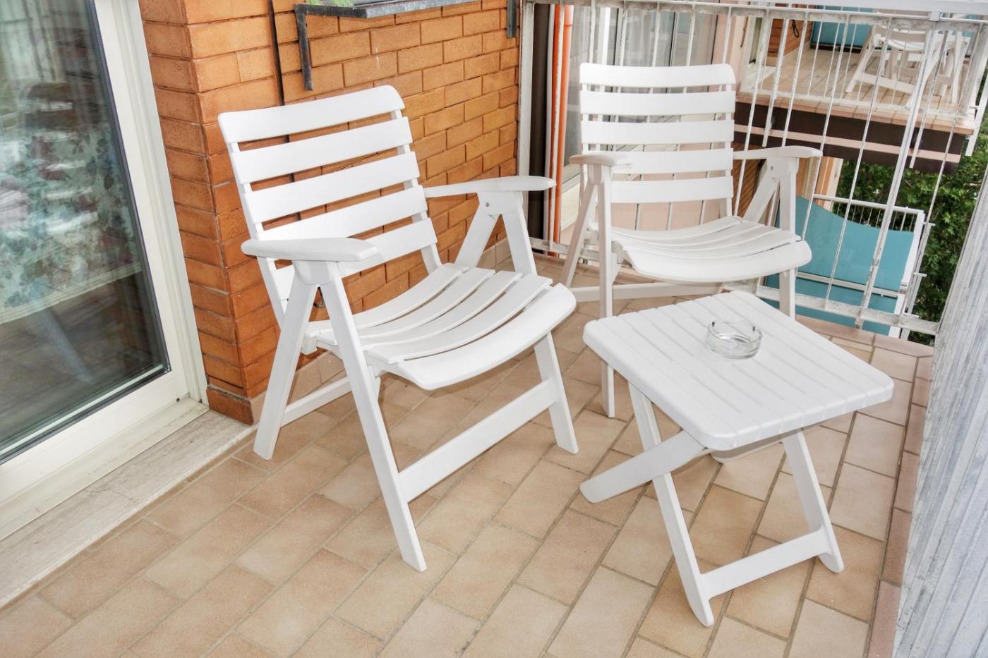 Camera Tripla con Balcone. Camera semplice dotata di balcone, connessione WiFi gratuita e aria condizionata. Dispone inoltre di TV a schermo piatto con canali satellitari, bagno privato e minibar. Alcune camere offrono una vista sulla piscina, altre sul mare. ;