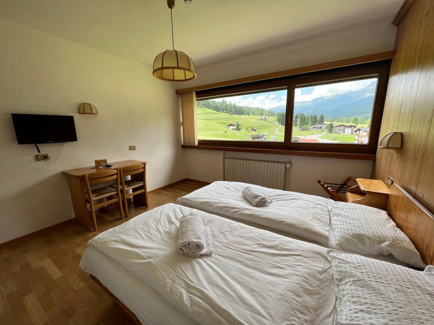 Camera Quadrupla Standard. Featuring free toiletries, this quadruple room includes a private bathroom with a shower, a bidet and a hairdryer. The quadruple room features a flat-screen TV, a private entrance, a wardrobe, heating as well as mountain views. The unit has 3 beds. ;