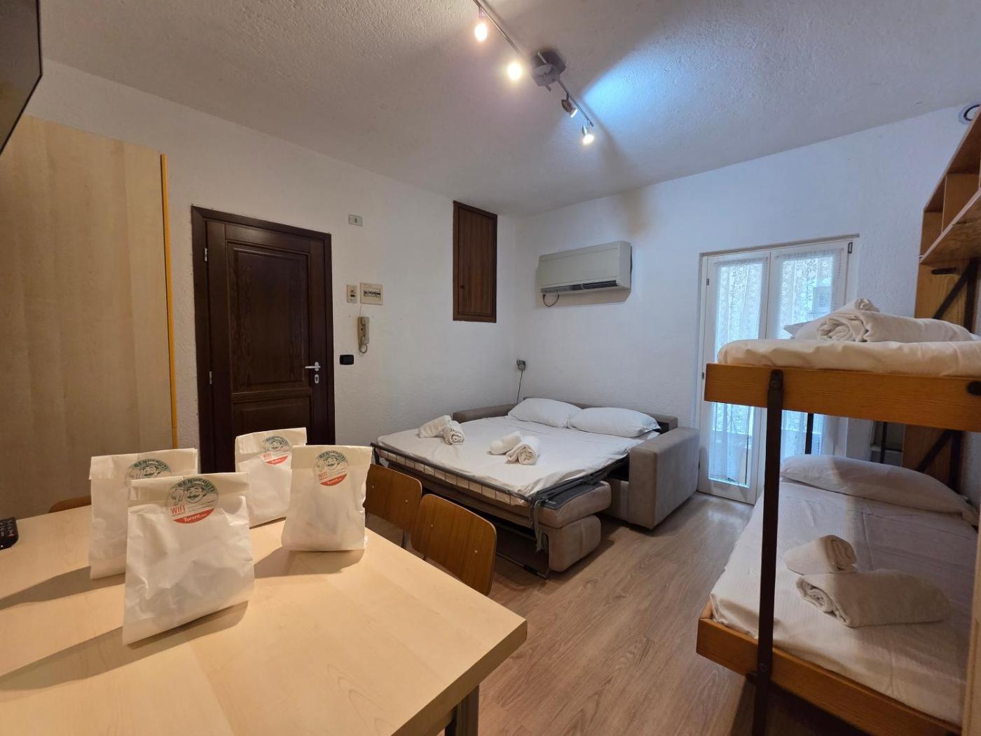 Monolocale. The studio offers air conditioning, a washing machine, as well as a private bathroom featuring a shower and a bidet. In the kitchen, guests will find a stovetop, a refrigerator, kitchenware and a microwave. The studio provides a tea and coffee maker, a wardrobe, a sofa, a high chair for children, as well as a TV. The unit offers 3 beds.